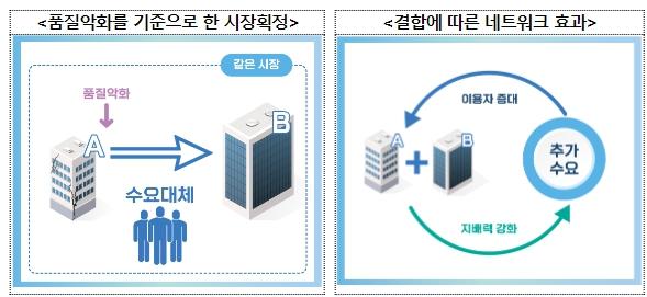 뿐만 아니라, 개정 심사기준은 경쟁제한 효과를 분석할 때 공정위가 네트워크 효과를 고려할 수 있음을 명시했다. 디지털 서비스 공급자의 기업결합은 해당 서비스의 이용자 수나 해당 사업자가 보유한 데이터 양 증가로 이어질 수 있다. 이용자 수 증가는 더 많은 소비자들이 해당 서비스를 이용하게 할 수 있으며, 데이터 양 증가는 해당 사업자가 제공하는 서비스 품질 개선으로 이어질 수 있어 이 역시 추가 수요 유발 요인으로 작용할 수 있다. 이러한 가능성(네트워크 효과)이 클수록 결합기업들의 시장지배력 역시 커질 수 있는데, 이를 고려할 수 있게 한 것이다.