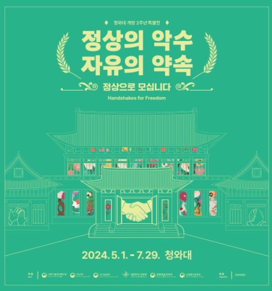 먼저 5월 1일부터 7월 29일까지 대한민국의 과거와 현재, 역사의 서사가 있는 청와대 본관에서 글로벌 중추국가로 발돋움하는 대한민국의 여정을 문화적으로 경험할 수 있는 전시 '정상의 악수, 자유의 약속 : 정상으로 모십니다'를 개최한다.