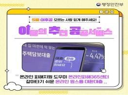한편,'이달의 추천 공공서비스'이용방법에 관한 상세 콘텐츠는 행정안전부 누리집과 정부혁신 누리집 및 SNS 채널(유튜브, 인스타그램 등) 등을 통해 확인할 수 있다.
