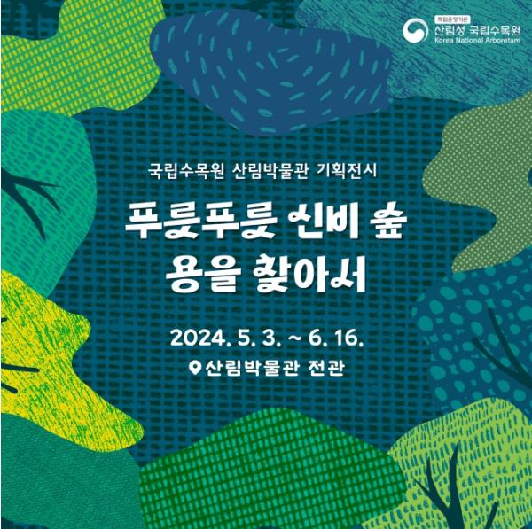 [중앙방송, 김혜영기자] 산림청 국립수목원(원장 임영석)은 5월 3일부터 6월 16일까지 갑진년甲辰年 청룡의 해이자 국립수목원 개원 25주년을 맞아 기획전시 《푸릇푸릇 신비 숲 용을 찾아서》를 개최한다.