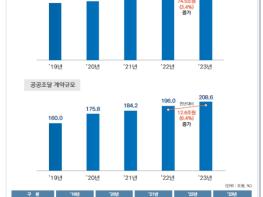 [중앙방송, 박정원기자] 2023년 공공조달 전체 계약규모가 전년 대비 12.6조원(6.4%) 증가한 208.6조원으로 2015년 통계작성 이래 역대 최고치를 기록한 것으로 조사됐다.
