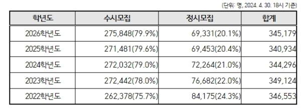 - 2024학년도 344,296명 → 2025학년도 340,934명 → 2026학년도 345,179명