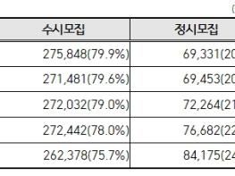 수시 및 정시 모집비율은 전년도 기준 소폭 변동