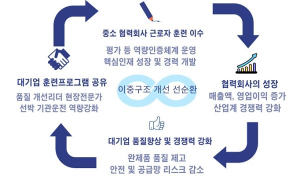 또한, 대기업은 평가, 이수증 등을 포함한 프로그램별 역량인증체계를 개발하고, 동종 산업계에서 통용될 수 있도록 하여 협력사 근로자의 지속적인 경력발전과 성장을 지원하게 된다.