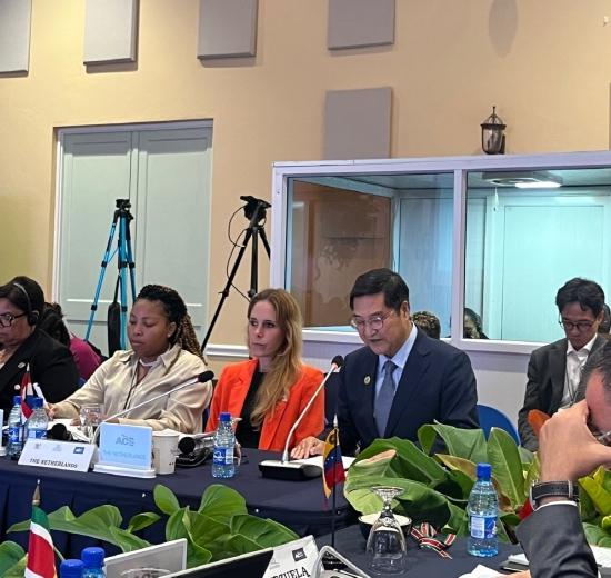 [중앙방송, 김정아기자] 전홍조 외교부장관 특별외교사절은 5월 9일 수리남 파라마리보에서 개최된 제29차 카리브국가연합(ACS) 각료회의에 참석했다.