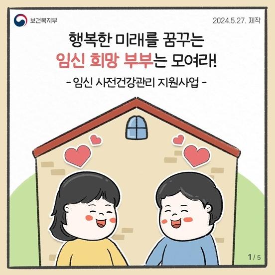 [중앙방송, 이은지기자] 내 아이와 행복한 미래를 꿈꾸는 임신 희망 부부를 위한 ‘임신 사전건강관리 지원사업’을 소개합니다! 임신 사전건강관리 지원사업 관련 자세한 내용은 카드뉴스를 참고해주세요.