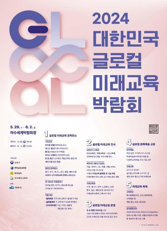 [중앙방송, 이온세기자] 교육부는 전라남도교육청, 전라남도청, 경상북도교육청과 5월 29일부터 6월 2일까지 여수세계박람회장 일원에서 ‘대한민국 글로컬 미래교육박람회’를 개최한다.