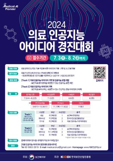 본 대회는 보건복지부 '의료 인공지능 융합인재 양성 사업'의 일환으로 추진되며, 보건의료분야 문제를 해결할 수 있는 ▲인공지능 모델 아이디어 기획 부문과 ▲아이디어 기획을 포함한 실제 인공지능 모델을 개발하는 부문 (2-Track)으로 나누어 진행될 예정이다.