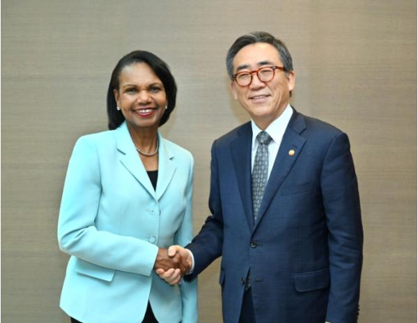 조 장관은 라이스 전 장관이 지난해 11월 스탠포드대에서 개최된 한일 정상 좌담회에서 사회를 맡아 한미 및 한미일 간 첨단기술·혁신 분야 논의의 장을 마련하는 등 행정부를 떠난 후에도 한미 동맹과 한미일 협력의 발전을 위해 지속 노력해온 것을 평가했다. 이에, 라이스 장관은 윤석열 대통령의 리더십 아래 한미 동맹과 한미일 협력이 크게 강화되고 있다고 하면서, 미국에 어떠한 행정부가 들어서든 한미 동맹은 발전해 나갈 것이라고 했다.