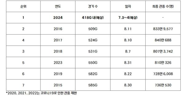 또한 전반기 최대 418 경기까지 가능한 가운데, 2012년 419경기 시점에서 600만 관중을 돌파한 기록을 넘어 역대 최소 경기 600만 관중을 돌파할 수 있게 된다.