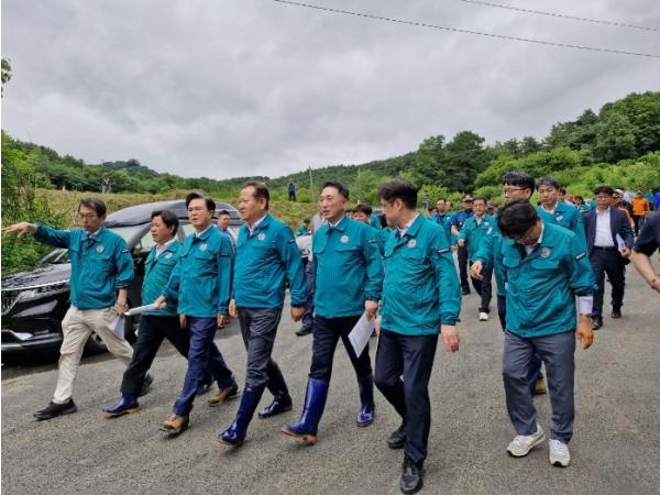 박 의원은 이날 오후 2시 부여군 임천면 구교리 수해현장을 방문한 이상민 행정안전부 장관, 김태흠 충남도지사에게 피해지역과 주민에 대해 속도감 있고 충분한 보상이 이루어지도록 지원할 것을 당부했다.