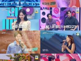 반면 이적은 “존박 씨는 어제 같이 있었는데도 얘기 안 했다. 나오면 저 친구의 어떤 말도 믿을 수 없다”라며 절연 선언에 나서더니, 백지영의 무대에는 “AI가 음까지 일부러 벗어나게 한다면 저는 이 프로그램 안 하겠습니다”라며 ‘극단적 추리’에 나서 좌중을 웃음바다로 만들었다. 상상도 못한 반전 조합인 박재범의 ‘Hype Boy’ 무대에는 모두가 흠뻑 빠져들었다.