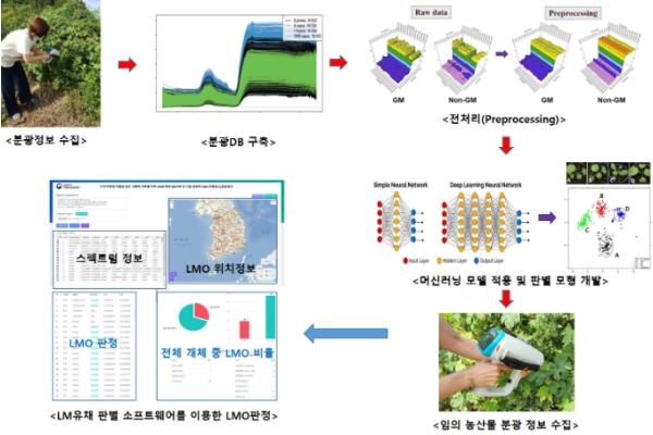 ‘가시근적외광 분광법을 이용한 유전자변형농산물 판별 기술’은 2021년 농촌진흥청이 개발했다. 분광분석기로 사진을 찍듯 표본을 찍어 정보를 확보한 후 이를 기계학습(머신러닝) 기법으로 학습시킨 인공지능을 이용해 판별하는 것이다.