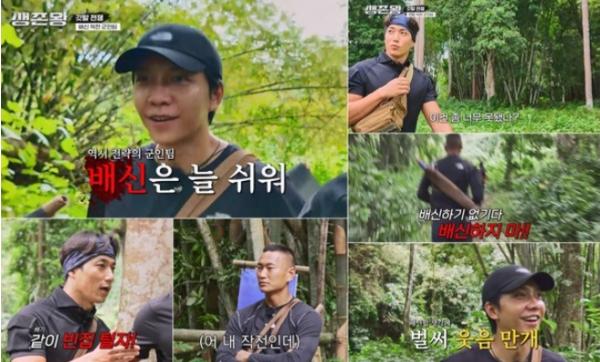 [중앙방송, 류희경기자] TV CHOSUN이 최초로 도전하는 본격 정글 서바이벌 '생존왕 : 부족전쟁'에서 전날 사냥 미션처럼 ‘군인팀’과 ‘국가대표팀’이 연합한다. 그러나 군인팀장 이승기는 “배신은 쉽다”며 국가대표팀의 뒤통수를 칠 것을 예고했다.