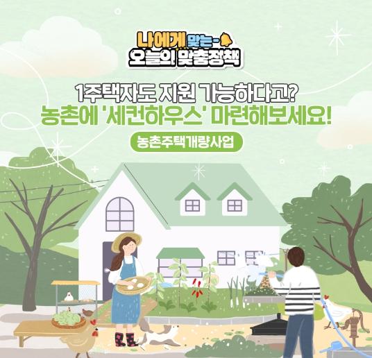 농촌주민들의 쾌적한 주거환경 조성 및 삶의 질 개선을 위해 농촌의 낡고 불량한 기존 주택을 철거하여 신축하거나 개량하는 비용을 금융기관으로부터 저금리 대출을 받을 수 있도록 지원해주는 사업