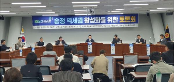 [중앙방송, 박노일기자] 국회 산업통상자원중소벤처기업위원회 소속 이용빈 의원(광주 광산구갑, 더불어민주당)은 9일 오후 3시 광주시의회 5층 예결위회의실에서 송정역세권 활성화를 주제로 한 토론회를 개최했다.