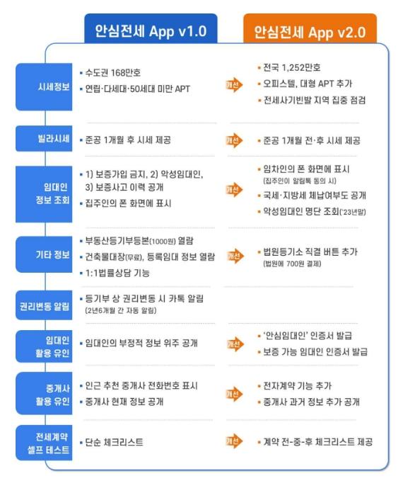 국토부는 이번 안심전세 앱 2.0을 개발하면서 그간의 앱 1.0 이용자들과 청년들이 제안한 사항을 폭 넓게 반영하였으며, 특히 앱 시세제공 범위가 좁다는 지적, 집주인 활용성도 높여야 한다는 지적 등을 중점 반영하였다.