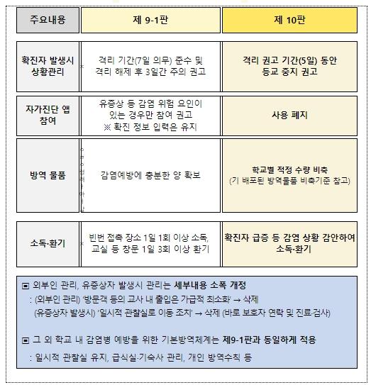 개정된 ‘코로나19 학교 방역지침’의 주요 내용은 다음과 같다.