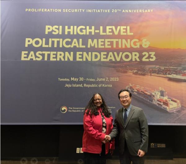 [중앙방송, 김정아기자] 이도훈 외교부 2차관은 확산방지구상(PSI) 20주년 고위급회의(HLPM) 및 아태순환훈련(Eastern Endeavor 23)(5.30-6.2) 계기 방한 중인 ?보니 젠킨스(Bonnie Jenkins)? 美 국무부 군비통제 ·국제안보 차관을 5.31일 면담하고, △PSI 고위급회의 결과 평가, △군축·비확산 분야 한미 협력 강화 방안 등에 대해 의견을 나누었다.