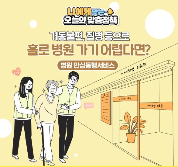 병원동행이 필요한 경우, 병원에 갈 때부터 귀가까지 모든 과정에 동행 매니저가 보호자처럼 동행해주는 서비스