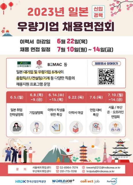 [중앙방송, 김영진 기자] 한국산업인력공단은 일본기업 취업을 희망하는 청년들을 위해 ‘2023년 일본 우량기업 채용면접회’를 개최한다.