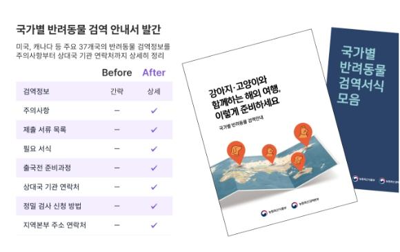 이번 종합 안내서는'강아지·고양이와 함께하는 해외여행, 이렇게 준비하세요(1권)','국가별 반려동물 검역 서식 모음(2권)' 등 총 2권으로 구성됐다.