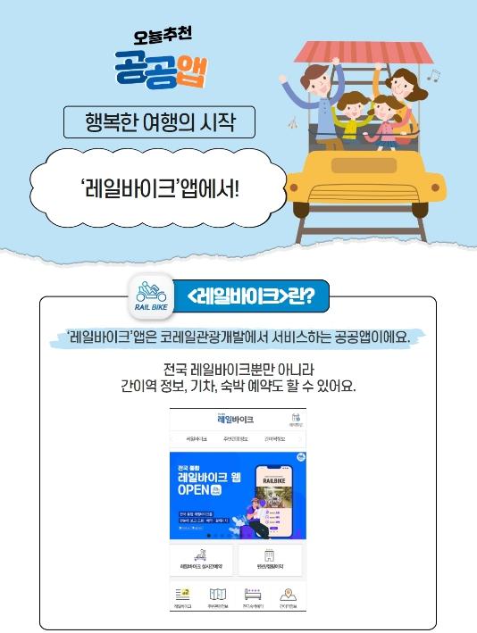 [중앙방송, 이엘리야기자] ‘레일바이크’앱은 코레일관광개발에서 서비스하는 공공앱이에요.?전국 레일바이크 조회뿐만 아니라 간이역 정보, 기차, 숙박 예약도 할 수 있어요.