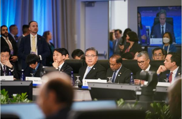 [중앙방송, 김정아기자] 박진 외교부 장관은 11월 14일 미국 샌프란시스코에서 개최된 APEC 외교통상합동각료회의 세션 1(토니 블링컨 미 국무장관 주재)에 참석하여, 보건위기·공급망 충격·기후변화 등 글로벌 복합위기에 대응하여 아태지역의 지속가능하고 포용적 미래를 만들기 위한 방안을 회원국 각료들과 논의했다.