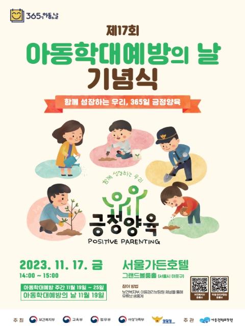 올해 17회를 맞는 이번 행사는 아동학대 예방을 위해 아동을 독립된 인격체로 존중하며 부모와 자녀 간 상호 소통과 이해, 신뢰를 바탕으로 한 양육 방법인 ‘긍정 양육’ 문화의 확산을 주제로 진행됐다.