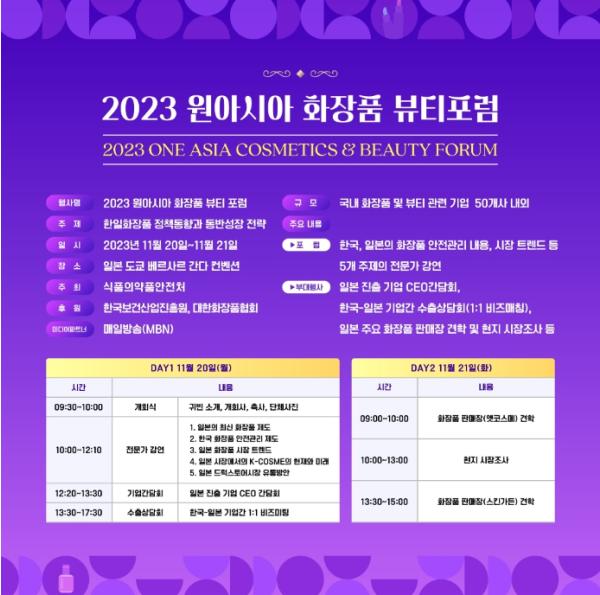 또한 이번 포럼은 한국보건산업진흥원의 ‘일본 도쿄 화장품 팝업 부스 운영사업(11월 12일~19일)’과 연계 개최하여 국내 중소기업의 일본 진출을 집중적으로 지원한다.