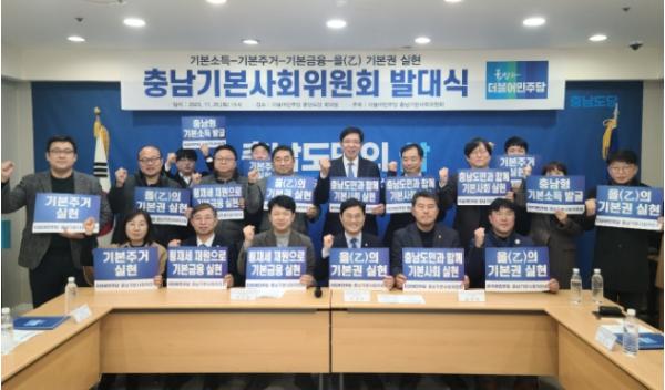 충남기본사회위원회는 11월25일 더불어민주당 충남도당 회의실에서 복기왕 충남도당위원장, 김세준 더불어민주당 기본사회위원회 부위원장, 충남지역 각 시군의 시도의원과 시민사회단체 활동가 등 20여명으로 구성된 기본사회 위원들이 참석한 가운데 발대식을 가졌다.