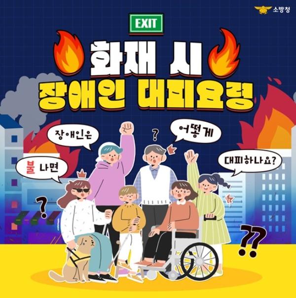 · 장애인이 젖은 수건 등으로 코와 입을 막고 낮은 자세로 대피할 수 있도록 돕는다.