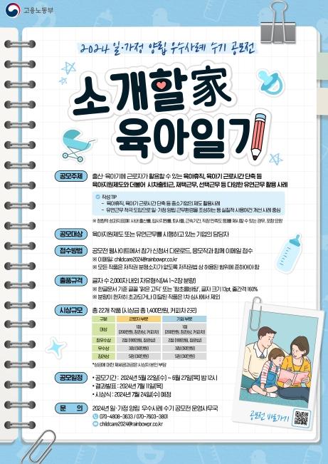 이번 공모전은 출산·육아기에 활용할 수 있는 육아지원제도와 다양한 유연근무 활용사례를 발굴·공유하여, 일하는 부모의 양육 부담을 완화하고 가정친화적 기업문화를 확산하고자 마련됐다.