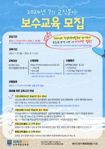 [중앙방송, 김영진 기자] 한국기술교육대학교 부설 능력개발교육원은 직업능력개발훈련 교ㆍ강사의 자질 향상을 위한 보수교육 교육생 10,700여 명을 7월 10일 오전 10시부터~16일까지 모집한다.