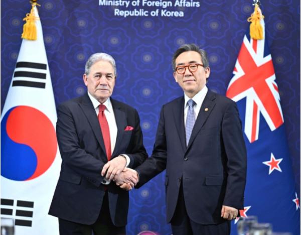 [중앙방송, 김정아기자] 조태열 외교장관은 7월 15일 정오 윈스턴 피터스(Winston Peters) 뉴질랜드 부총리 겸 외교장관과 오찬회담을 갖고, △고위급 교류, △경제 등 실질협력, △한반도 및 주요 지역정세와 같은 공동 관심사에 대해 의견을 교환했다.