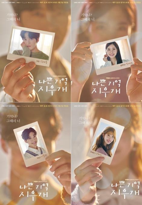 [중앙방송, 류희경기자] MBN 금토미니시리즈 '나쁜 기억 지우개'의 김재중, 진세연, 이종원, 양혜지가 폴라로이드 사진의 밝은 미소와 상반된 흐릿한 과거 기억의 비밀이 담긴 캐릭터 포스터를 공개해 시선을 사로잡는다.