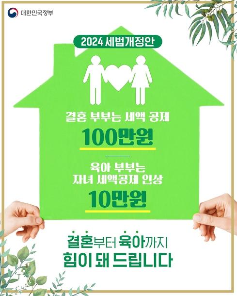 문화체육관광부 , [2024 세법 개정안] 결혼 부부는 100만 원 세액공제, 자녀 세액공제 10만 원 인상