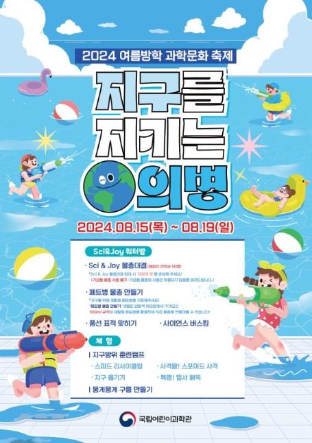 [중앙방송, 김혜영기자] 과학기술정보통신부 국립어린이과학관이 여름방학을 맞이하여 8월 15일부터 8월 18일까지 4일간 '2024 여름방학 과학문화축제 ‘지구를 지키는 의병’'을 개최한다.