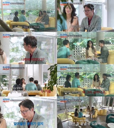여자친구의 아버지는 “바쁜 건 없는데...차근차근 밟아가지. 뭐 그리 급하다고...”라고 묵직한 몇 마디를 건넸다. 이에 심현섭은 공손히 손을 모은 채 아무 말도 하지 못했고, 여자친구 또한 아버지의 눈치만 보며 입을 다물었다.