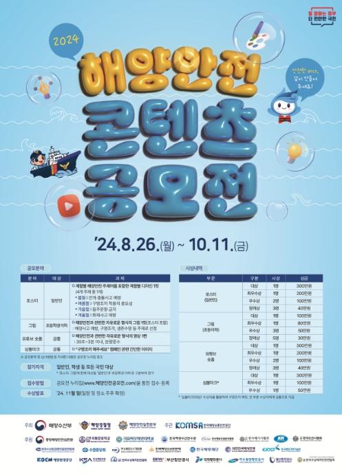 [중앙방송, 김영진 기자] 해양수산부와 해양경찰청은 “해양안전문화 확산을 위해 '2024 해양안전 콘텐츠 공모전'을 8월 26일부터 10월 11일까지 개최한다.”라고 밝혔다.