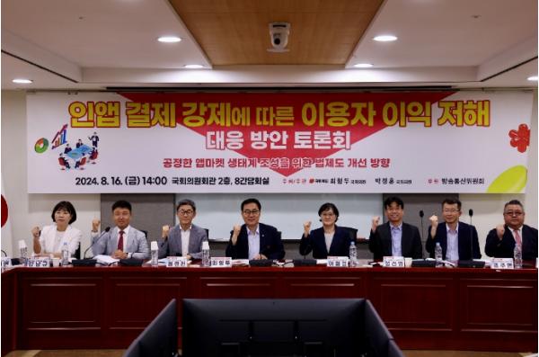 [중앙방송, 박노일기자] 글로벌 빅테크 기업들의 시장 지배력이 강화되면서 이들의 불공정 행위에 대한 우려가 국제적인 이슈로 부각되는 가운데 최형두 국회의원(경남 마산합포, 과학기술정보방송통신위원회 간사)과 박정훈 국회의원(서울 송파갑, 과학기술정보방송통신위원회 위원)은 16일 국회 의원회관 제8간담회의실에서 ?인앱 결제 강제에 따른 이용자 이익 저해 대응 방안 토론회?를 공동으로 개최했다.
