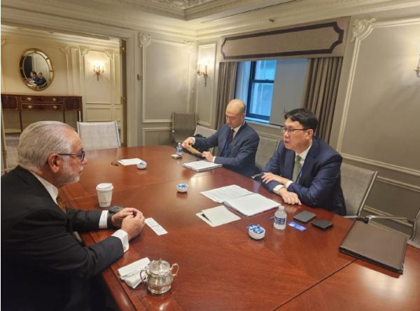 [중앙방송, 김정아기자] 이주일 외교부 중남미국장은 제79차 유엔 총회 참석 계기 로돌포 사봉헤 카리브국가연합(ACS) 사무총장을 9월 27일 면담하여, ?기후변화 대응, ?해양협력, ?인적교류 등 분야에서 한-ACS 협력 강화 방안을 논의했다.