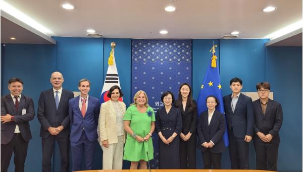[중앙방송, 김정아기자] 한민영 외교부 기후환경과학외교국장은 파올라 팜팔로니(Paola Pampaloni) 유럽대외관계청(EEAS) 아시아·태평양 부실장과 2024년 10월 10일 '제6차 한-EU 에너지·환경·기후변화 작업반 회의'를 공동으로 주재했다. 외교부에서 개최된 동 회의에서 양측은 에너지, 환경, 기후변화 관련 정책을 교류하고, 한-EU 그린파트너십 이행 등을 포함한 협력 확대 방안을 논의했다.